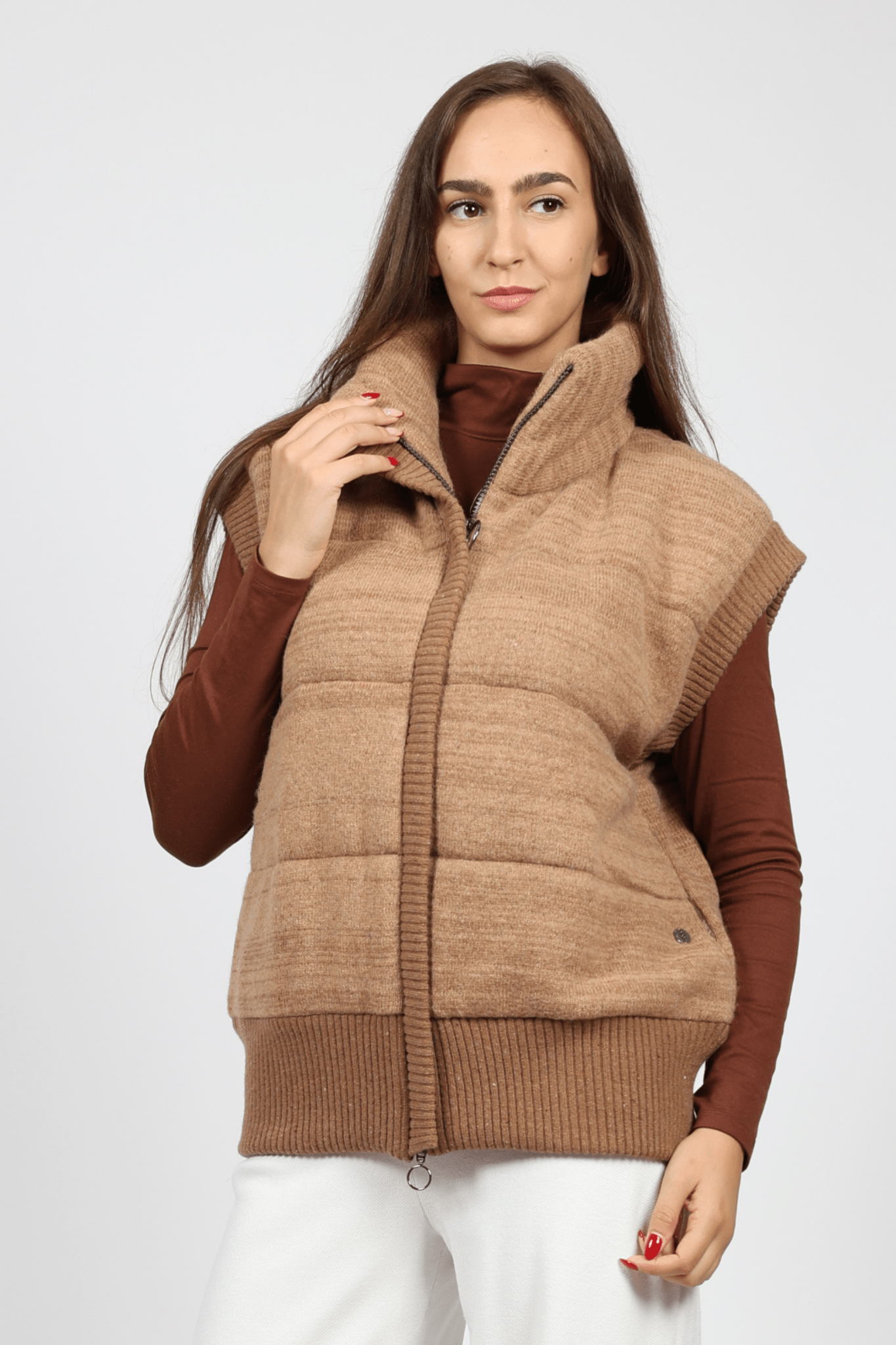 Дамски Плетен Елек, Бежов